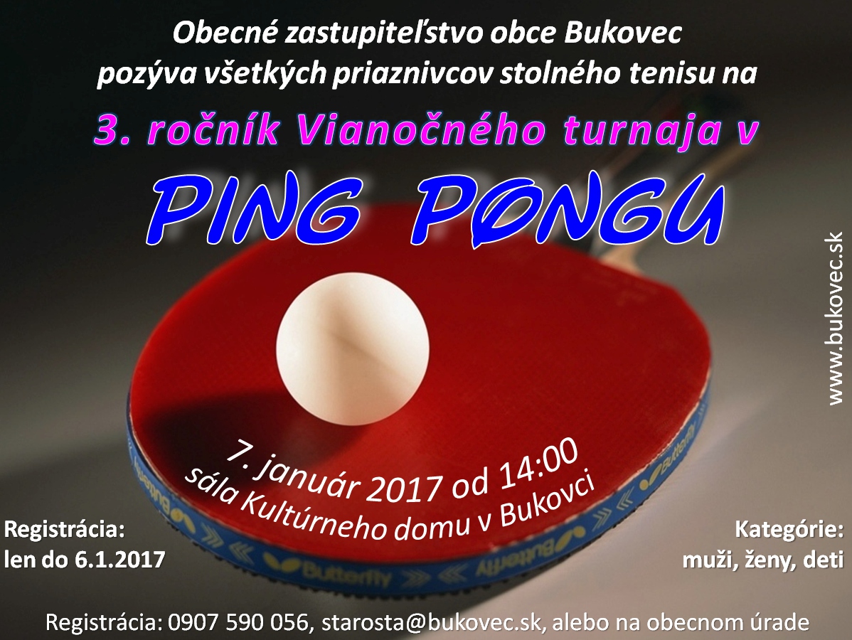 Stalo sa už tradíciou, že na začiatku kalendárneho roka poslanci obecného zastupiteľstva ako aj starosta obce usporadúvajú Vianočný turnaj v stolnom tenise. Tohto roku sa konal už v poradí 3. ročník. Stolnotenisový turnaj sa odohral v sobotu 7. Januára 2017 so začiatkom o 14:00 hod. Do turnaja sa prihlásilo celkovo 22 súťažiacich.